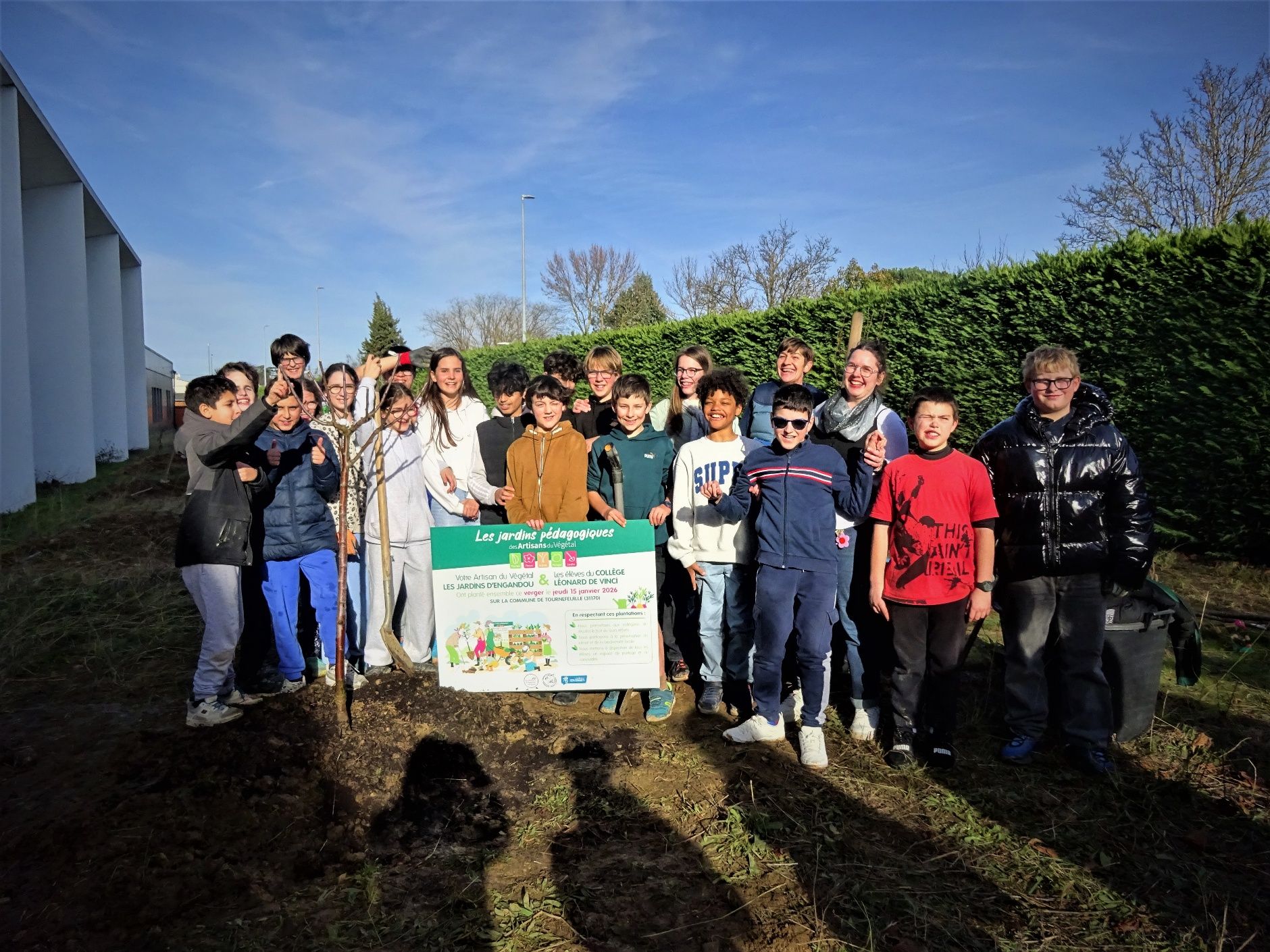 Jeudi 15 janvier 2026, une trentaine d’élèves (écodélégués et volontaires de l’atelier jardin) du collège Léonard de Vinci , accompagnés par Mme Fleur Beaumel (enseignante de SVT), Mme Gladys Ramseyer (AESH), Mme Agathe Lemettre (AESH et photographe volontaire) et Mme Pardis Harirchian (assistante en Anglais) ont commencé la plantation du verger tant attendu.